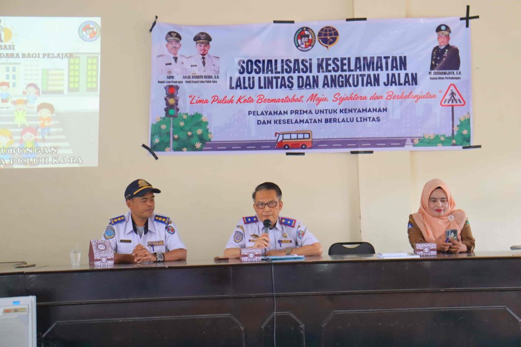 Kepala Dinas Perhubungan Kabupaten Lima Puluh Kota, M. Darmawijaya, S.H, memaparkan berbagai materi mulai dari aturan dasar berlalu lintas, penggunaan helm standar, pentingnya kelengkapan kendaraan, hingga etika berkendara yang baik. Narasumber juga menekankan bahwa pelajar merupakan kelompok yang rentan terlibat kecelakaan lalu lintas sehingga pemahaman sejak dini sangat dibutuhkan.